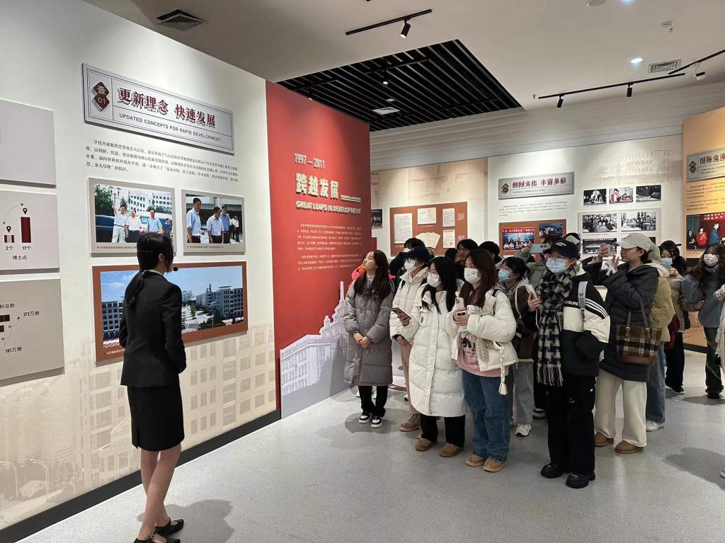 伴随着讲解员的介绍,一幅幅图片,一行行文字映入我们的眼帘。我们充分地了解到了黑大八十多年来的建校历程,看到了我校在教育、科研、办学等方面的成就和成果。在这之中,同学们深刻地感受到了黑大师生为建设学校所做出的努力和奋斗,看到了黑大对于未来清晰的规划和可观的蓝图。与此同时同学们也清楚地认识到学校的办学理念和文化特色,对于“博学慎思,参天尽物”的校训,以及“志存高远、爱国奉献、艰苦奋斗、自强不息”的校风有了更深层次的理解和认识。