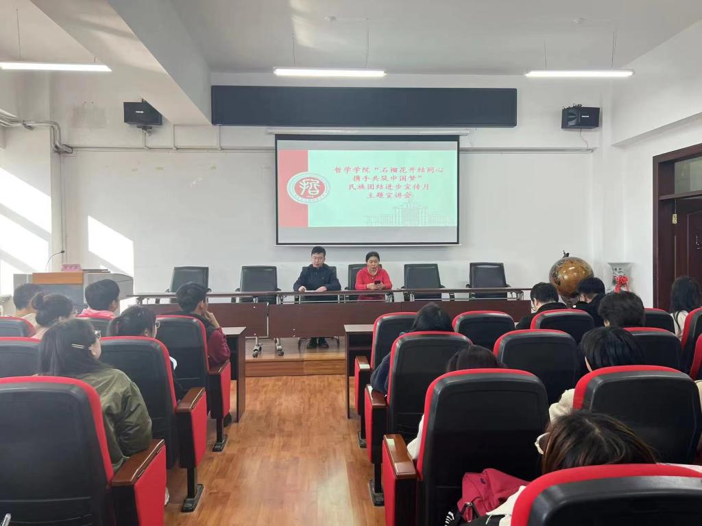 于2023年10月18日在汇文楼937会议室召开了“石榴花开结同心 携手共筑中国梦”民族团结进步宣传月主题宣讲会。性爱视频