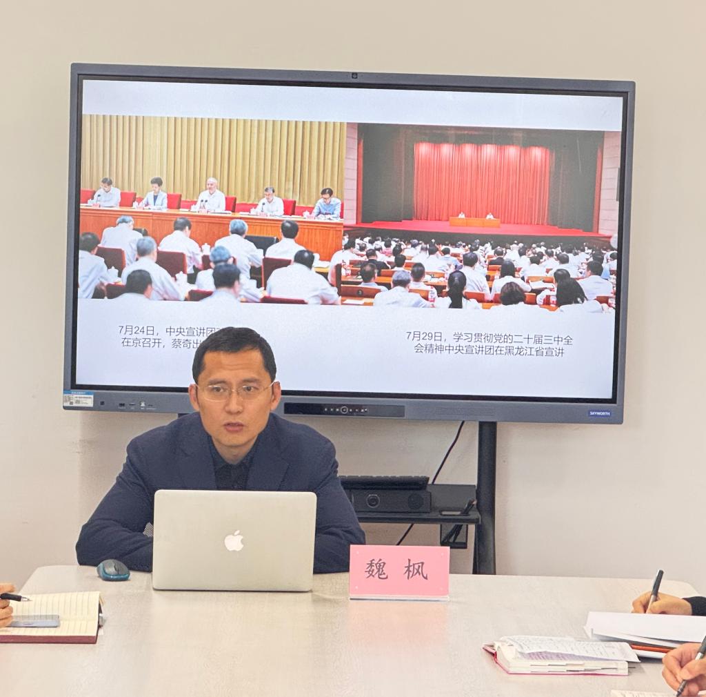 魏枫教授围绕习近平总书记在党的二十届三中全会上的重要讲话精神、全面准确理解《决定》提出的进一步全面深化改革重大举措、深刻把握省委贯彻落实三中全会精神的主要安排等三个方面进行了宣讲,重点解读了从1997年至今我国经济发展脉络形式以及当前经济发展的新趋向,鼓励师生积极助力龙江振兴发展,为新质生产力的发展提供新动能。