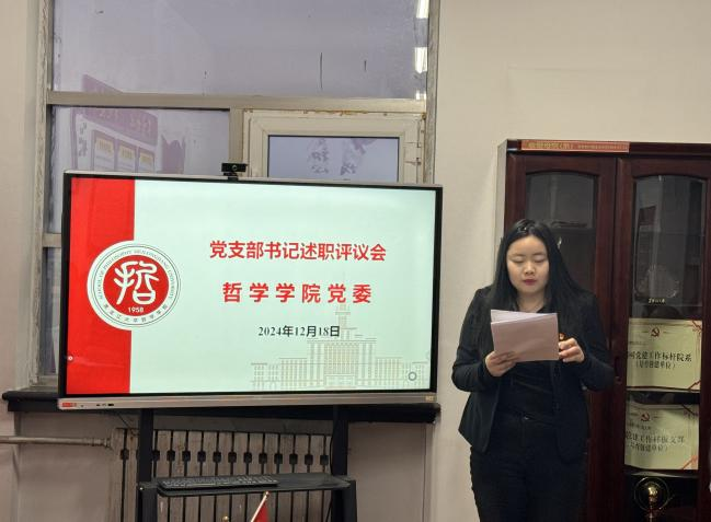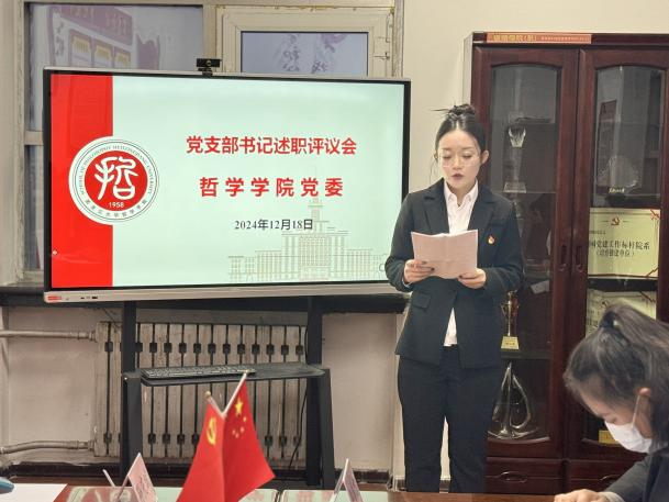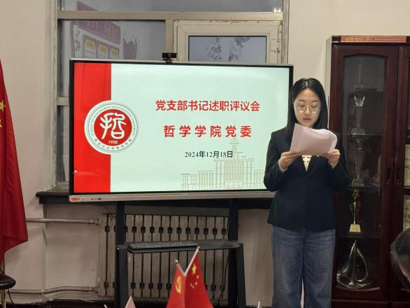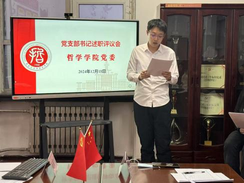 会议伊始,学院党委书记孙美晖对本次党支部书记述职评议考核工作的内容、流程和要求作了详细说明。随后,本科生2021级学生党支部书记焦瑞、本科生2022级学生党支部书记张博伦、本科生2024级学生党支部书记赵慧雪、博士生党支部书记王天夫、硕士生2022级学生党支部书记郭若言、硕士生2023级学生党支部书记于泳菲、硕士生2024级学生党支部书记王淼,依次围绕开展党纪学习教育及学习贯彻党的二十届三中全会精神和省委十三届六次全会精神情况、落实基层党建工作重点任务、落实基层党建工作责任制和全面从严治党要求、抓好有关问题整改等四个方面情况,对2024年履行职责方面进行了系统全面的阐述,深入查摆自身在抓基层党建工作上存在的问题及原因,同时结合本支部工作特点有针对性地提出了下步工作思路和主要措施。另有三位党支部书记进行了书面述职。