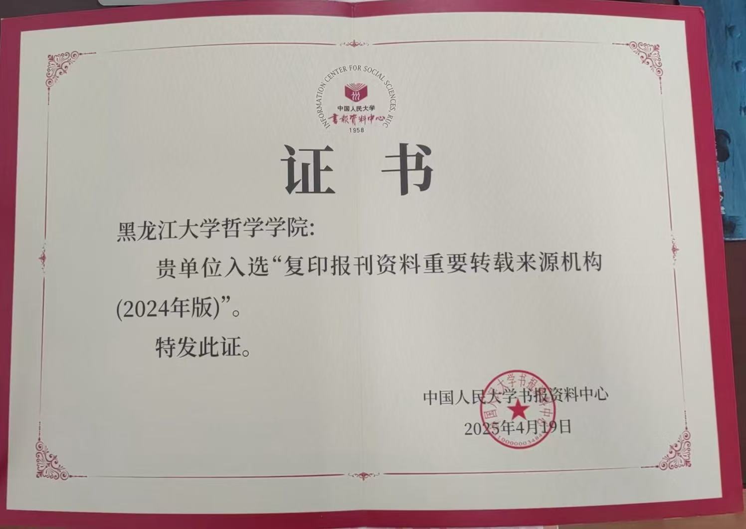始终坚持"扎根龙江、服务国家战略"的特色发展理念,在马克思主义哲学、文化哲学、中国哲学、伦理学研究等领域取得系列突破性成果。此次入选“复印报刊资料重要转载来源机构(2024年版)”,标志着我院在哲学学科建设、科研创新和社会服务方面迈上新台阶。新学期学院将继续秉持“博学慎思,参天尽物”的校训精神,深耕哲学基础理论研究,拓展跨学科融合创新,培育高水平学术成果,为中国特色哲学社会科学体系建设贡献更多“黑大力量”。(性爱视频