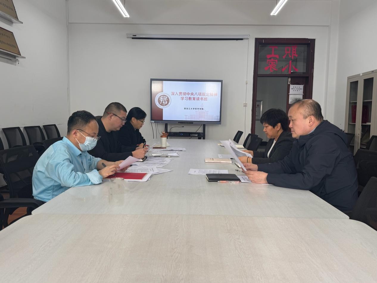 于4月7日至8日在汇文楼922会议室开展深入贯彻中央八项规定精神学习教育专题读书班活动。