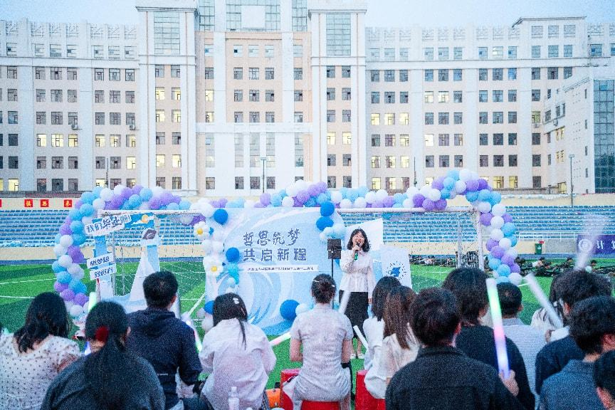 2025年5月29日傍晚,哲学学院举办“思哲辨理展风华,驭梦扬帆赴山海”2025届毕业生草坪音乐联欢会,哲学学院党委书记孙美晖、哲学学院院长蒋红雨、哲学学院党委副书记王贵宇、哲学学院副院长周来顺、正处级辅导员孙庆斌老师以及各年级辅导员齐聚现场,与毕业生们共赴这场镌刻哲思与温情的歌会。从激昂歌舞到深情朗诵,从惊喜互动到师长寄语,整场联欢会精彩纷呈,师生们用歌声、祝福与陪伴,为毕业生们点亮奔赴未来的启航之路。